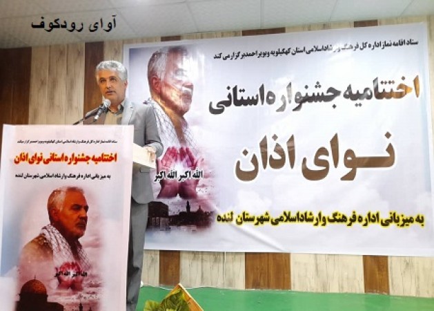 اسماعیل زارعی رئیس اداره فرهنگ وارشاداسلامی شهرستان لنده در ابتدای برنامه جشنواره استانی نوای اذان همزمانی این برنامه با ایام فاطمیه دوم و همچنین سالگرد شهادت سردار دل ها سردار شهید سلیمانی و میزبانی شهرستان لنده از شهید گمنام را از اهمیت این برنامه دانست.