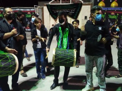 "دَمام زنی"هیئت قمر بنی هاشم(ع) لنده در شب هشتم محرم+تصاویر و فیلم