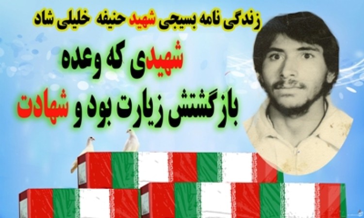 قسمتي از وصيت نامه شهيد حنيفه خليلي شاد : وقتي خبر متولدشدن بچه اش را به وي دادند گفت: به خدا به پشت جبهه برنمي گردم تا امام حسين(ع) را زيارت نكنم و يا به شهادت نرسم.